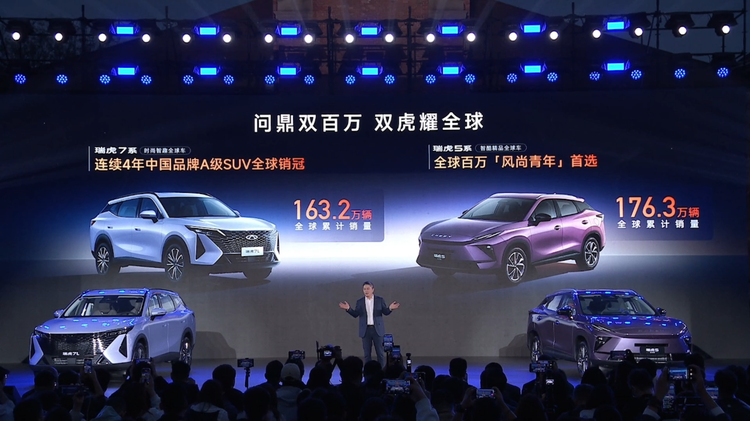 瑞虎7系列十年五代,全球累计163.2万辆,连续四年中国品牌A级SUV全球销冠,畅销100多国。瑞虎5系列十三年,全球累计176.3万辆,连续中国A0级SUV出口冠军,远销80余国。奇瑞连续23年中国品牌乘用车出口第一,累计出口突破600万辆。