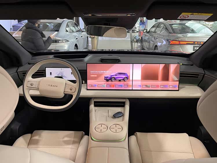 座椅方面,全车四个座位都支持电动调节、加热、通风和按摩。主驾驶位采用的是AI零压云毯座椅2.0,还带主动侧翼支撑;副驾驶则是带电动腿托的AI零重力座椅,坐上去确实很舒服。后排乘客也不会被亏待,25扬声器的NISSAN SOUND音响系统、全景天幕加电动遮阳帘、前排双层隔音玻璃和NVH降噪技术,再加上AI无感风控制系统,整体乘坐体验偏向舒适安静。
