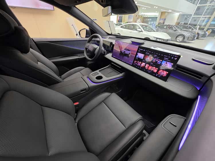 车身侧面线条简洁饱满,带着一点运动姿态。无框车门、隐藏式门把手都没有缺席,搭配19英寸或20英寸的双色轮毂,再加上贯穿式尾灯,整体感觉很时尚。颜色方面选择也不少:摩纳哥紫、翡冷翠绿、流光银、墨海蓝、曜石黑、霜雪白共六种单色,还有曜石黑与霜雪白的双拼色可选。另外,你还可以选装“量子光幕”尾灯,能实现智能交互和自定义灯语,解锁车辆时有点仪式感。