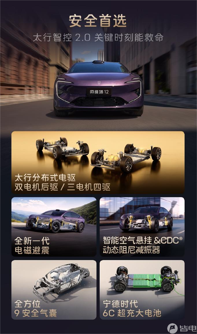 动力方面,新阿维塔12将率先搭载最新发布的太行智控2.0技术,新技术将会采用分布式后驱电机,其中,增程版本左右电机功率均为200kW,而纯电后驱版本的左右电机功率为251kW,四驱三电机版本会在前轴增加一个210kW的电机,采用全新太行智控2.0技术的阿维塔12的0-100km/h加速时间最快可以来到2.71s。
