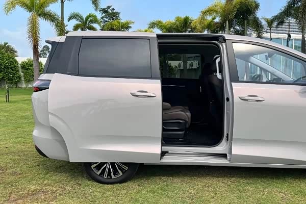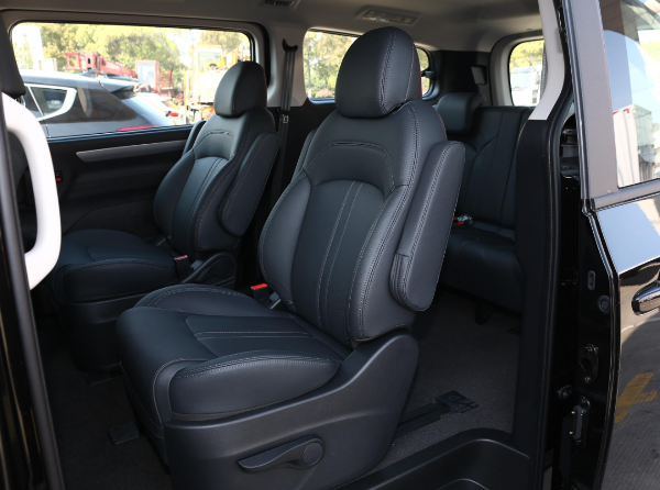 风行菱智价格跨度最大,5.99-9.99万元,车身长度超过5.1米,轴距最长3198毫米,提供5座、7座、9座布局。它的核心优势在于空间极限拓展能力——座椅可以折叠、侧挂甚至直接拆卸,最大载货空间达到4340升。二排独立座椅支持360度旋转,这个设计很实用:带孩子出行时可以转过来面对面照顾,或者长途时让后排乘客打牌聊天。全系标配双侧滑门,装卸行李或者去市场采购大件物品时非常方便。但要注意,菱智的整体调校偏向载重和商用场景,底盘较高,通过性好,走烂路不怕托底,但车内噪音偏大。内饰塑料感较强,高速过弯时车身侧倾较大,CNG版本动力偏弱,满载爬坡会有些吃力。