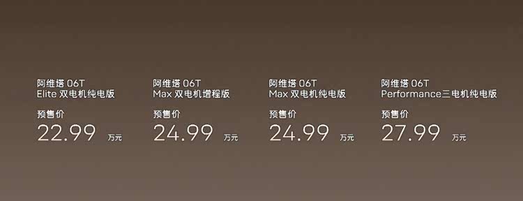 近日, 阿维塔06T(参数|询价)车型开启预售,给出的预售价格22.99万元起,那我们也直言不讳,这个价格明显是高了,目前阿维塔06的起售价格是20.99万元,无论长安是否认可,但一个目前国内市场的现实是,旅行车不能明显比三厢版本贵,你可以象征性的高个一两千,但高2万肯定是没得卖,因此最终该车上市之时,价格还会有回归,要么是降价,要么是推出新的配置,消费者也不必太过着急。