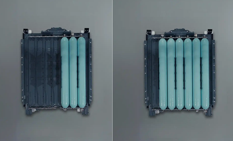 该版本带来了一个非常具有看点的设计方案,其将储氢罐设计在类似于动力电池组的金属包里,扁平化的设计很像是动力电池组。