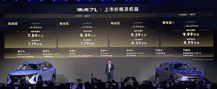 日前,奇瑞汽车旗下全新紧凑型SUV—— 瑞虎7L(参数|询价)正式上市。新车共推出4款车型,官方指导价8.59-10.69万元,限时优惠价7.89-9.99万元,超值置换价7.19-8.99万元。作为瑞虎7家族新成员,新车围绕空间、智能、设计等维度进行升级,进一步丰富奇瑞品牌在紧凑型SUV市场的产品布局。
