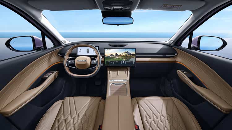 内饰采用一体式环抱座舱设计,提供琥珀棕等配色,车内大量使用软质包覆与菱形缝线工艺。核心配置包括15.6英寸2.5K高清滑移中控屏、12.3英寸全液晶仪表,搭载高通骁龙8155芯片与Lion 5.0雄狮智云系统。此外,新车配备电子怀挡、256色音律氛围灯、索尼音响、无线充电及540°高清全景影像(含透明底盘)。