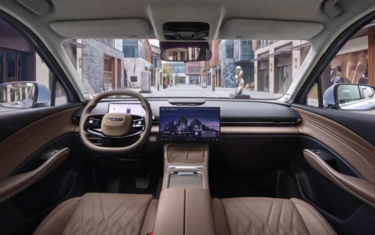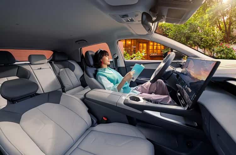 车内设计风格简洁,采用了15.6英寸悬浮式中控屏,配备8.88英寸全液晶仪表盘,采用高通骁龙8155芯片,车机响应迅速,支持全场景语音交互与手机APP远程控制,540度全景影像、OTA升级以及手机互联等功能一应俱全,提升了日常用车的便利性。