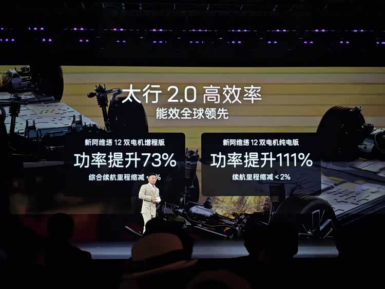 先看最核心的动力。新阿维塔12全系标配太行分布式电驱系统,后驱、双电机四驱、三电机四驱全覆盖。Performance和Master版本综合功率712kW,零百加速2.71秒,方向盘上还专门加了一键加速按钮,按下就能多30%动力输出。这种性能,放在几年前是超跑水准,如今下放到30万级轿车,本身就是一种颠覆。