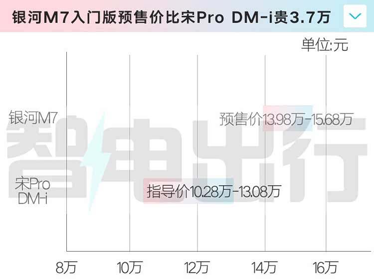 共推出3款配置车型,130km探索版预售价13.98万元,225km探索+版和225km星舰版预售价分别为14.68万元和15.68万元。虽然看起来比银河L7及其竞品比亚迪2026款宋Pro DM-i都贵不少,但是按照行业惯例,新车上市指导价通常会比预售价低一些,银河M7的最终定价也许会有惊喜。