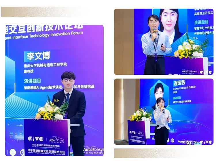 来自重庆大学李文博副教授团队的李心愿博士分享了智能座舱AI Agent的演进路径,强调未来的车灯控制将融入大模型决策中枢,实现从机械的“指令执行”向深度的“意图理解”质变,让灯光系统能主动适应用户需求。在此基础上,华域视觉软件分中心的贾书曼展示了“AI驱动的场景引擎”,该技术让车灯摆脱了预设脚本的束缚,能够根据天气、路况甚至用户情绪实时生成动态氛围,实现了从迎宾礼遇到地面投影游戏的“千人千面”个性化表达。与此同时,上汽大众氛围灯团队的程晓茜进一步探讨了AI时代氛围灯的创新方向,她强调光作为环境模态应具备“无感交互”的特质,在营造美学氛围的同时,利用呼吸灯语等微妙变化传递关键信息,在不打扰驾驶员的前提下校准人机信任。