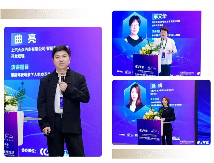 聚焦内部交互挑战,上汽大众智能驾驶系统开发经理曲亮直面“接管悖论”与“认知负荷”痛点,提出基于人因工程的“黄金三角”原则(安全第一、信任建立、无感交互)。他特别强调照明作为非侵入式模态,在通过光语传递系统状态、降低驾驶员认知负荷及校准人机信任方面,具有不可替代的核心价值。深耕外部交互实证,河北工业大学李文华博士针对自动驾驶eHMI场景,通过研究证实“图标类信号结合自适应闪烁策略”能显著降低行人认知负荷并优化过街决策,为外部光交互设计提供了坚实的科学依据。致力体验量化闭环,中国汽车技术研究中心有限公司首席专家杨靖主张打通从“NPS用户洞察”到“标准引领”的路径。她提出将主观光环境感受转化为客观评价指标,以反哺设计并推动行业标准制定,旨在破解“参数达标但体验不佳”的困境,确保光体验既合规又具高级感。