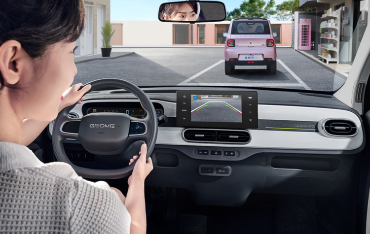 高配车型上的悬浮式中控屏集成了基础的娱乐和倒车影像功能,直观易用。