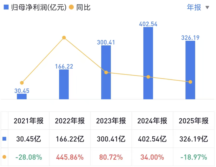 财报显示,比亚迪归母净利润326.19亿元,同比下降近两成;毛利率从2024年的19.44%降至2025年17.74%,净利率同步从5.18%下滑至4.06%。