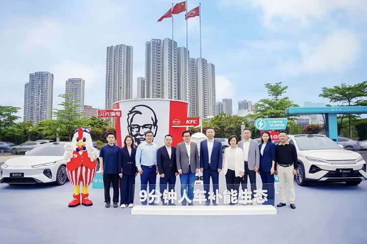 车家号·0浏览·2026-04-09 18:21 · 北京近日,比亚迪与肯德基正式签署战略合作协议。双方宣布,将围绕新能源汽车充电与餐饮零售场景,打造“9分钟一站式人车补能”生态。这一合作的核心,是让用户在驾车途中同时完成车辆充电和个人用餐,实现“车充饱、人吃饱”。