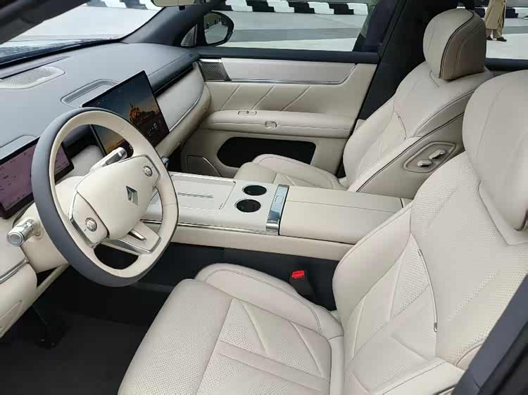 内饰方面,环抱式座舱搭配全液晶仪表与悬浮式中控屏,中控岛台设有双手机置物架及风冷无线充电。后排配备双侧小桌板与吸顶屏,副驾驶位提供老板键。这些配置在长途出行或家庭场景中具有较高的实用频率。内饰提供檀香棕、象牙米两种配色,外观则有墨玉黑、羊脂白、玛瑙灰、琥珀蓝四种选择。