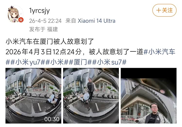 为何小米汽车会对哨兵模式进行升级,让车外小爱同学进行语音驱离呢?可能这和小米汽车频繁遭到恶意划伤有关。
