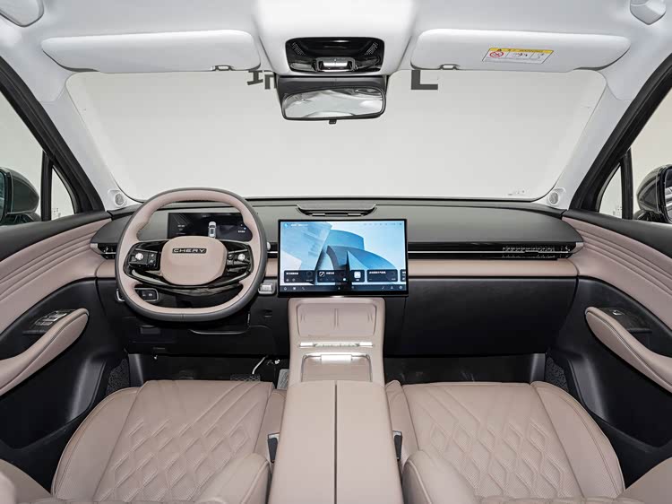 内饰采用环抱式设计,大面积软包材质搭配菱形纹理皮革,提升了豪华感。顶配车型的15.6英寸悬浮式中控屏支持左右滑动,可移至副驾作为娱乐屏使用,内置高通骁龙8155芯片。