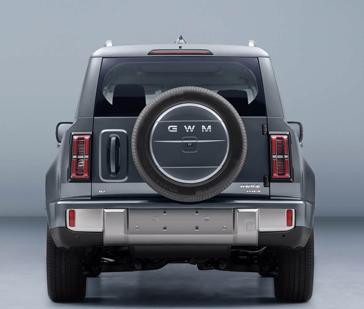从申报图来看,新车采用了极其鲜明的方盒子设计语言。车头轮廓方正硬朗,窄条幅式的前格栅与两侧圆角矩形的大灯组相连,中央贯穿两条横向镀铬饰条,这种设计手法在粗犷中透露出一定的精致感。平直的车顶线条、高挑的车身姿态以及隆起的轮眉,共同勾勒出经典硬派SUV的比例。车尾部分,纵置的尾灯组和外挂式备胎是点睛之笔,侧向开启的尾门结构则进一步强化了其功能属性。值得一提的是,车顶清晰可见的激光雷达模块,无声地宣告了它在智能驾驶层面的高阶定位。