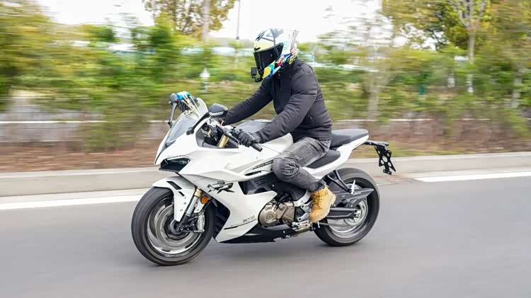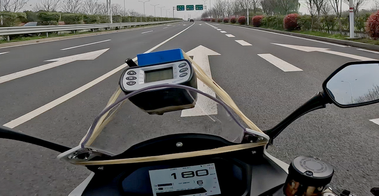 在封闭道路上测试车辆的再加速能力,以时速100出头行驶,瞬间油门全开,可以很轻松的来到140km/h,拖拽感十足,二次加速依然强劲,动力储备基本能满足绝大部分摩友的动力需求。以时速140左右在快速路上,高速行驶2km,整车稳定性表现出色,在高架桥上也没有发飘感,值得称赞,配合其充沛的动力输出,很有驾驶激情。