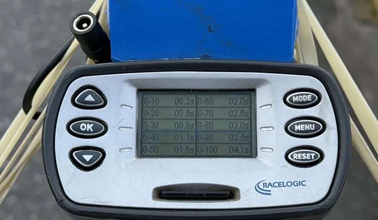 运动模式下关闭TC,赛550ES零百实测P-BOX最好成绩为4.1s,比官宣的3.8秒要略慢(因为体重、满箱油、非解限速、操作等原因带来差异)。这个加速性能,在同排量双缸车型中,属于顶流,比四缸的无极500RR要快0.7秒(同人测评)。值得一提的是原车标配了弹射起步模式,将转速维持在6000rpm弹离合即可,对于普通车友来说,多了一个低难度体验极限加速的方式,很有趣。