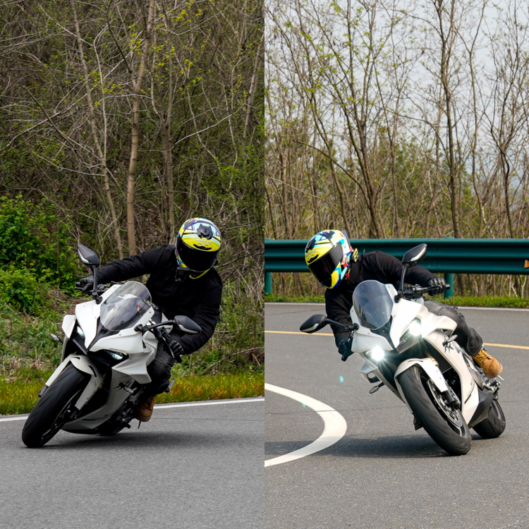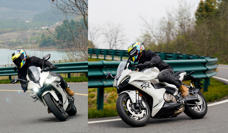 550ES呈现出较为明显偏向舒适的调教,原厂避震设定以街道舒适为主,在跑山过程中表现得不够尽兴,入弯前连续降档,电子快排的加持下升档降档都干脆利落,好用,弯前重刹减速时这套马祖奇前避震器的下沉量明显,在连续的左右翻身以及回头弯,以及90以上高速激情过弯,赛500ES的表现更为慵懒,快速倾倒以及过弯时,车身的响应会略慢半拍,以一台类街跑的准仿赛来看,这样的表现也属正常。然后我们将前减震调硬一些,跑山的感受顿时有明显不同,下弯和翻身利落很多,激情一些的跑山,足以胜任。