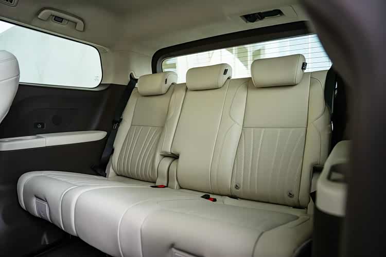 侃哥(身高172cm)坐在后排,517mm的坐垫进深(比同级均值多15%)、365mm的座椅高度(比同级均值多14%)带来充足承托,腿部与头顶均有两拳多空间,高个子乘坐都没问题,真正做到了三排平权。更好的是靠背角度可以调节,第三排同样可以“葛优躺”,坐垫还支持240mm前后滑动,可以在载人和载物之间灵活调节。