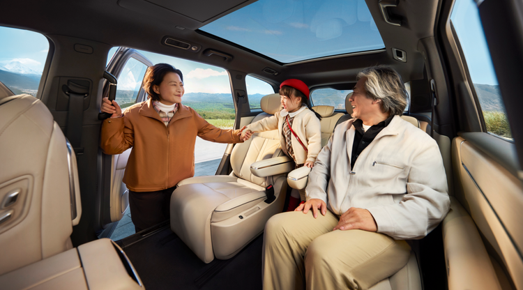前排座椅采用14层结构,6向电动调节、4向腰托,再加上3档通风/加热以及5种模式8点按摩,久坐不累,长途出行能大大缓解疲劳感;二排双独立座椅除上述功能外,又增加了400mm电动腿托、独立扶手,并可实现一键躺平,比家里的沙发还舒服,带来家人完全就是SPA级体验。
