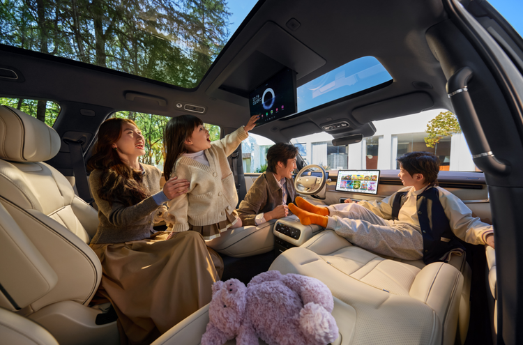 除了大沙发,“冰箱、彩电”也没落下。中排15.6英寸吸顶娱乐屏,二排三排都能看;8.8L智能冷暖冰箱,能放10瓶矿泉水,夏天能喝冰镇可乐、冬天能喝热牛奶;二排还有两个小桌板,配备独立水杯槽和平板电脑卡槽,孩子写个作业、大人临时办公都方便。此外,哈曼Infinity音响、香氛系统、前后排天幕+电动遮阳帘、无极调色氛围灯……你想要的智能舒适配置全都有。
