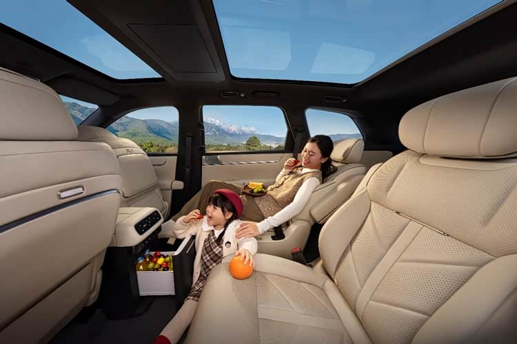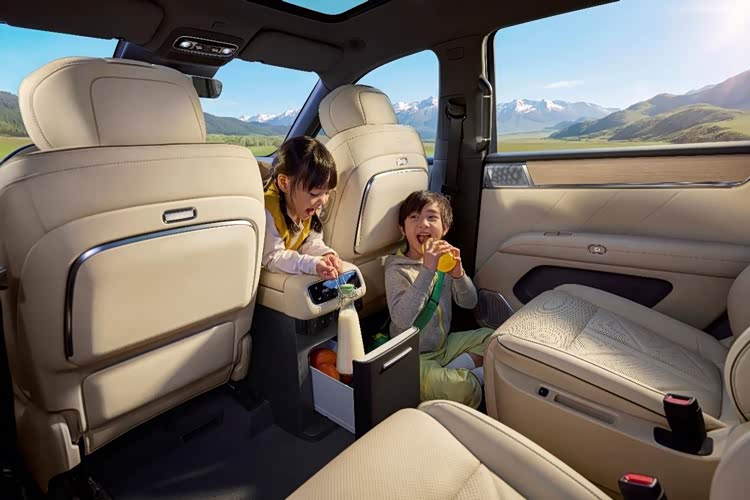 更让人有情绪价值的体验是华境S为用户打造的“舒适的家”。8.8L冷暖冰箱、15.6英寸后排吸顶娱乐屏、同级唯一第二排双桌板、香氛、前后双天幕,华境S全都有。更重要的是,它实现了6张座椅舒适平权,大家都拥有独立充电位,而且第三排坐垫长550mm,传统SUV第三排坐小板凳的痛点不会再有,真正做到了让全家都能舒服出行。