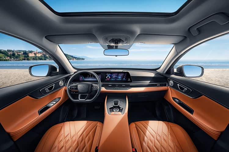 内饰部分,新车最明显的变化当属配备了24.6英寸液晶仪表+中控车机所组成的曲面双联屏,整体科技感营造更为突出,车机内置Lion雄狮智云系统,同时中央副仪表区域也进行了全新设计,换装了全新样式电子怀挡,整体内饰高级感更为明显。