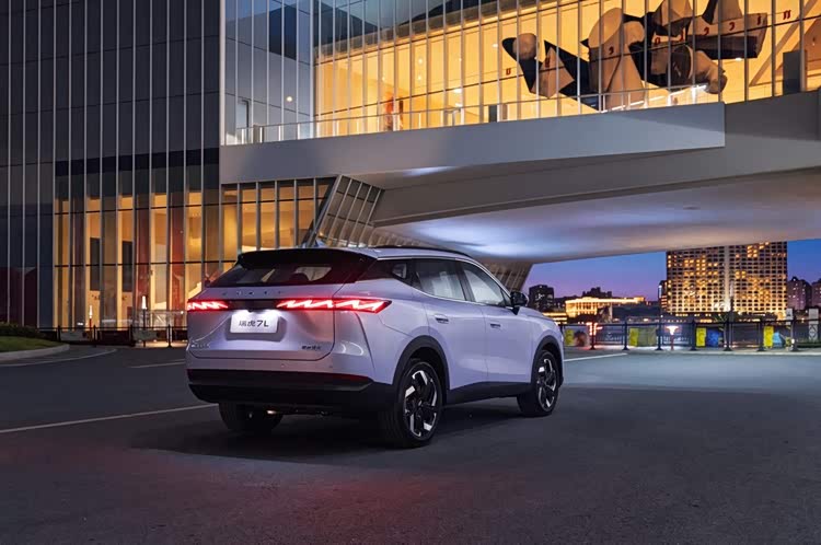 车身采用溜背式造型,熏黑ABC柱营造出悬浮式车顶,上扬式车身筋线配合半隐藏式门把手,相比瑞虎7更具灵动性;同时尾灯组内部光源也十分具有辨识度,闪电式造型夜晚点亮后十分吸睛。