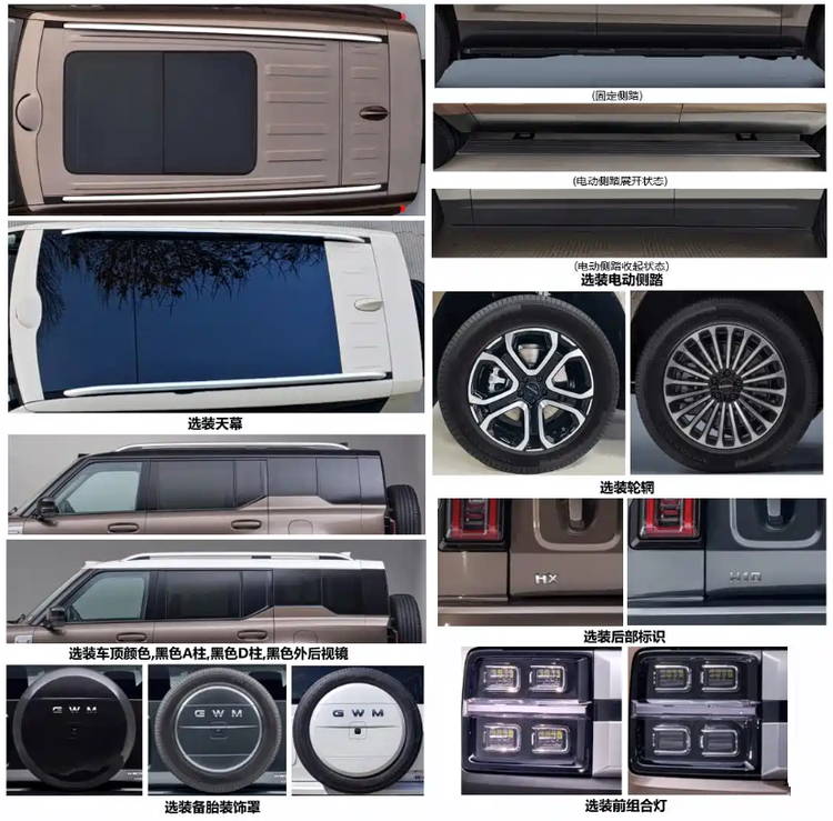 在申报的细节方面,我们可以看到新车采用的是非常厚重的风格打造,新车有全景天窗和全景天幕可选择,它的车身也有不同风格的车 轮毂可选,还可以选择黑色或者是白色的车顶,增加了趣味性。在动力方面,新车搭载的是1.5T和2.0T发动机组成的插混动力,两款发动机最大输出功率分别为123kW和175kW,纯电续航180km/176km。