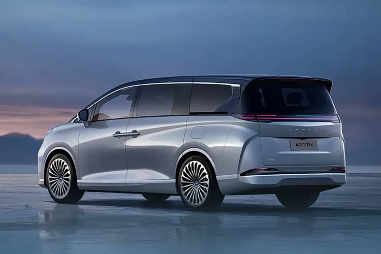 车身侧面运用“优雅脉冲”设计主题,流畅曲面兼具优雅与张力,悬浮式车顶延伸至尾部。D柱采用游艇式设计风格,配备双侧电动侧滑门及密辐式轮圈,整体设计风格简约庄重。车尾搭载贯穿式3D立体尾灯,如一道未来光轨,赋予车辆极高辨识度。