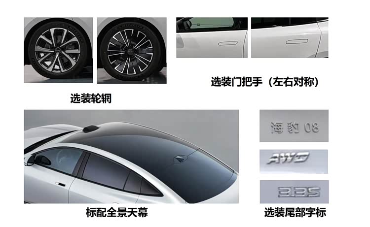 尺寸之类的信息应该跟之前的海豹08DM没什么区别:外廓5150 × 1999 × 1505mm,轴距3030mm,主要还是动力上的不同——纯电版有255kW和320kW两个单电机版本,以及一个190kW+320kW的双电机四驱版。