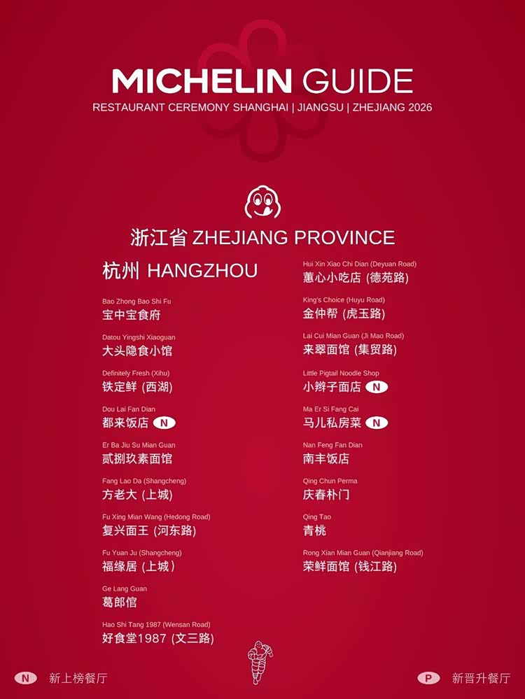 2026年的米其林指南见证了杭州餐饮的全面开花:高端市场持续突破,新晋二星餐厅证明了杭州精致料理的深度;而大量平价且美味的必比登餐厅上榜,则展现了这座城市强大的餐饮群众基础与活力。从西湖到街巷,杭州正以更加自信和多元的姿态,在中国乃至世界的美食版图上留下深刻的印记。(图:米其林官方,文:添喜lucklily)