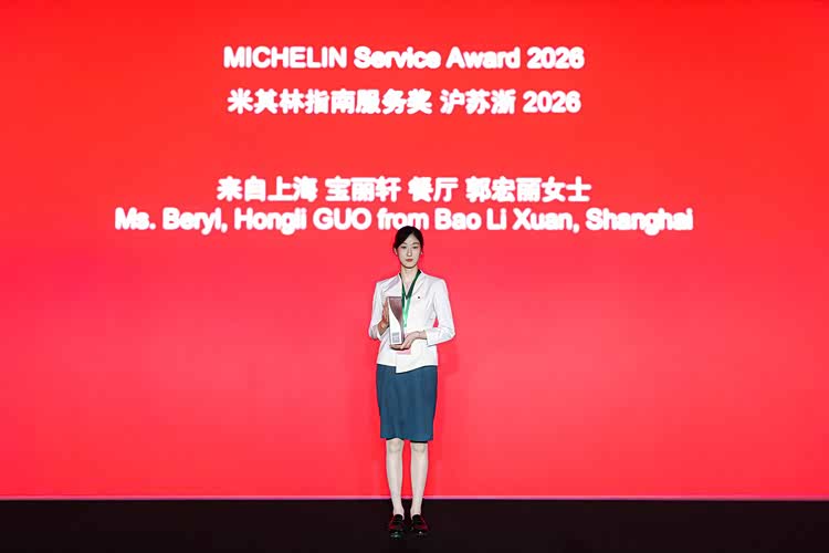 上海米其林二星餐厅宝丽轩的郭宏丽女士荣获本年度米其林指南服务奖。郭女士凭借出色的学习能力和积极进取的态度快速成长,并将这份热情与专注带到了上海宝格丽酒店。她入职虽短,却也展现出惊人的学习速度和专业悟性。无论是介绍菜品还是分享餐厅理念,她总能以温柔自然的语调,真诚质朴地传递出源于内心的专业与热爱。最令人称道的是她在服务时始终如一的从容与优雅,这份由内而外的自信与专业,使她成为服务人员中的榜样。