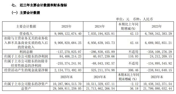 财报显示,2025年千里科技的营业收入为99.99亿元,同比增长42.13%;归属于上市公司股东的净利润为8440.8万元,同比增长110.93%;扣非净利润为-2.55亿元,相较于2024年的-6804.3万元,亏损幅度扩大将近4倍。不过,扣非净利润亏损金额不大。