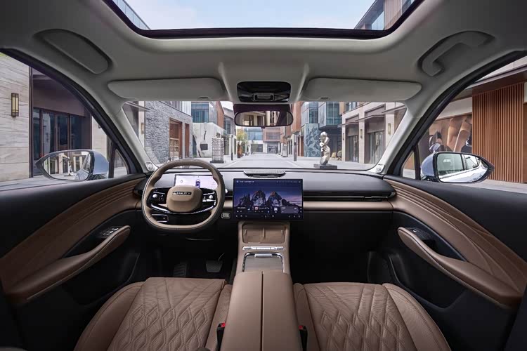 配置方面,智尚型比入门风尚型增加可开启式全景天窗、540°全景超清影像、电动尾门;尊尚型在智尚型基础上增加50W无线充电、蓝牙钥匙、256色氛围灯、承重式行李架、前排座椅通风和加热功能;同时搭载L2级辅助驾驶系统,可实现ACC自适应巡航、AEB自动紧急制动、FCW前向碰撞预警等功能。顶配尊尚型+的中控屏支持横向滑移至副驾前方,增加配备侧气帘、远端安全气囊,前排座椅支持记忆、按摩功能,副驾座椅配备电动腿托,还具备BSD盲区监测、DOW开门预警、RCTB后方交叉碰撞制动等辅助驾驶功能。