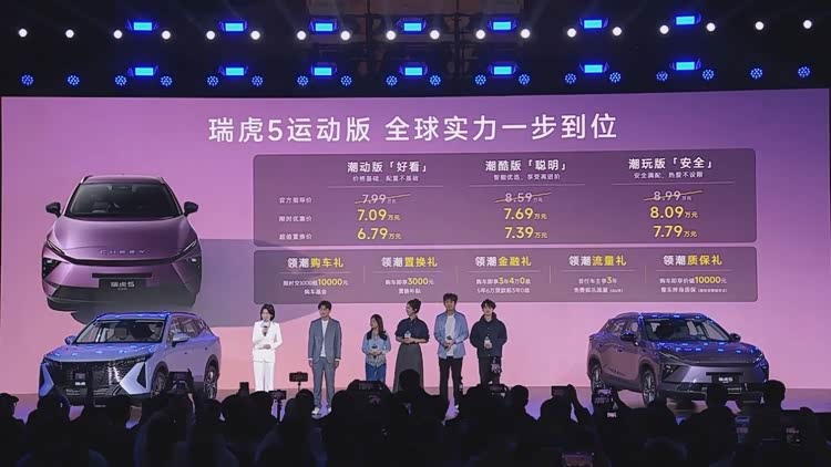 瑞虎5运动版共推出潮动版、潮酷版、潮玩版三款车型,指导价7.99万-8.99万元,限时价7.09万-8.09万元,置换价为6.79万-7.79万元。