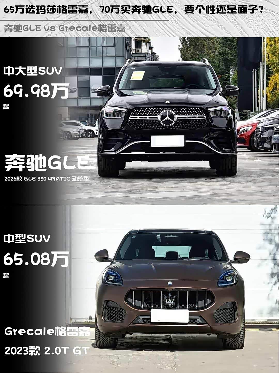 最近在纠结奔驰GLE 2026款 GLE 350 4MATIC 动感型和玛莎拉蒂 Grecale格雷嘉(参数|询价) 2023款 2.0T GT这两款车,深度试驾后分享一下真实感受,给同样纠结的朋友一点参考~✨