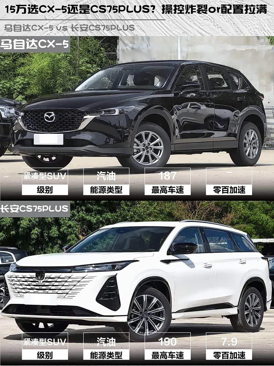 马自达CX-5 vs 长安CS75PLUS(参数|询价):15万级SUV神仙打架,谁才是操控王?🚗💨
