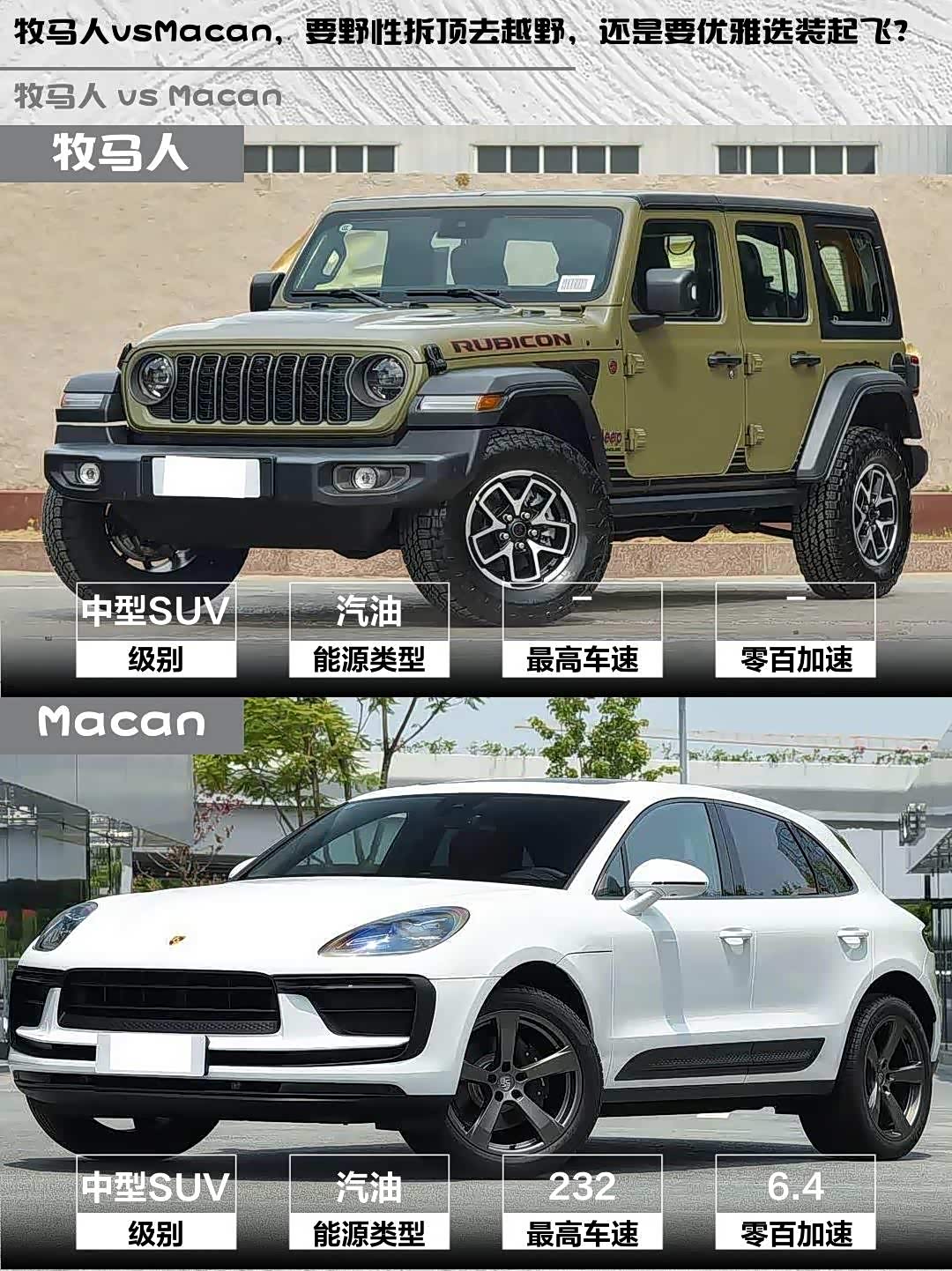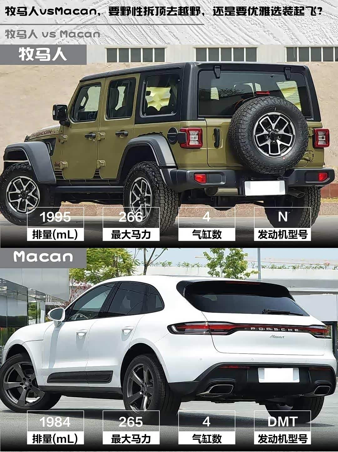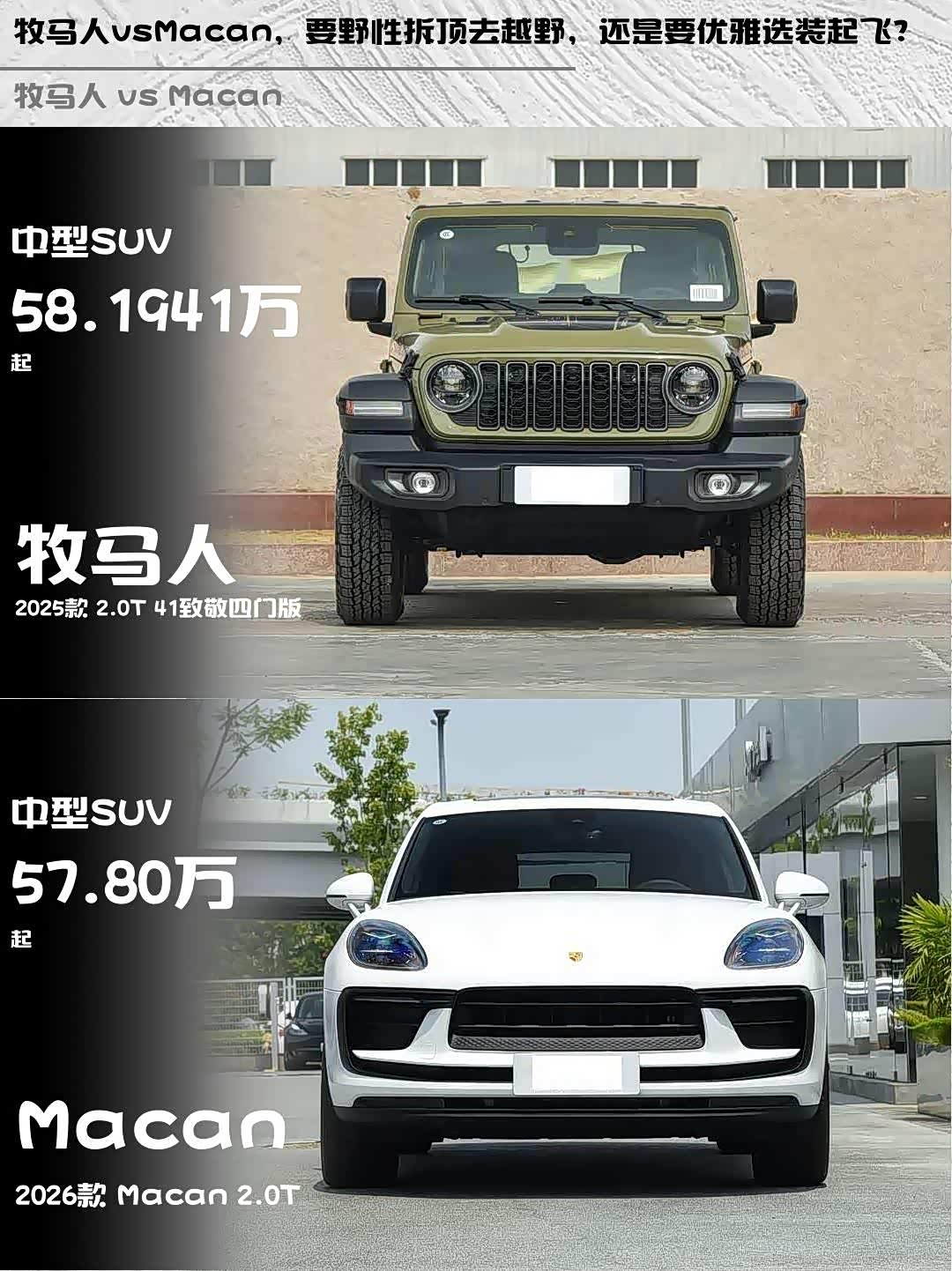 牧马人2025款2.0T 41致敬四门版 vs Macan 2026款2.0T,硬派越野和豪华运动的对决,谁才是你的菜?🤔