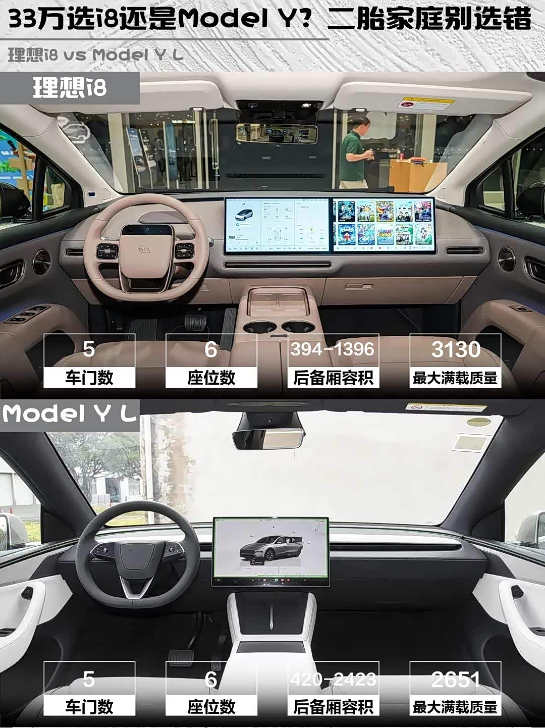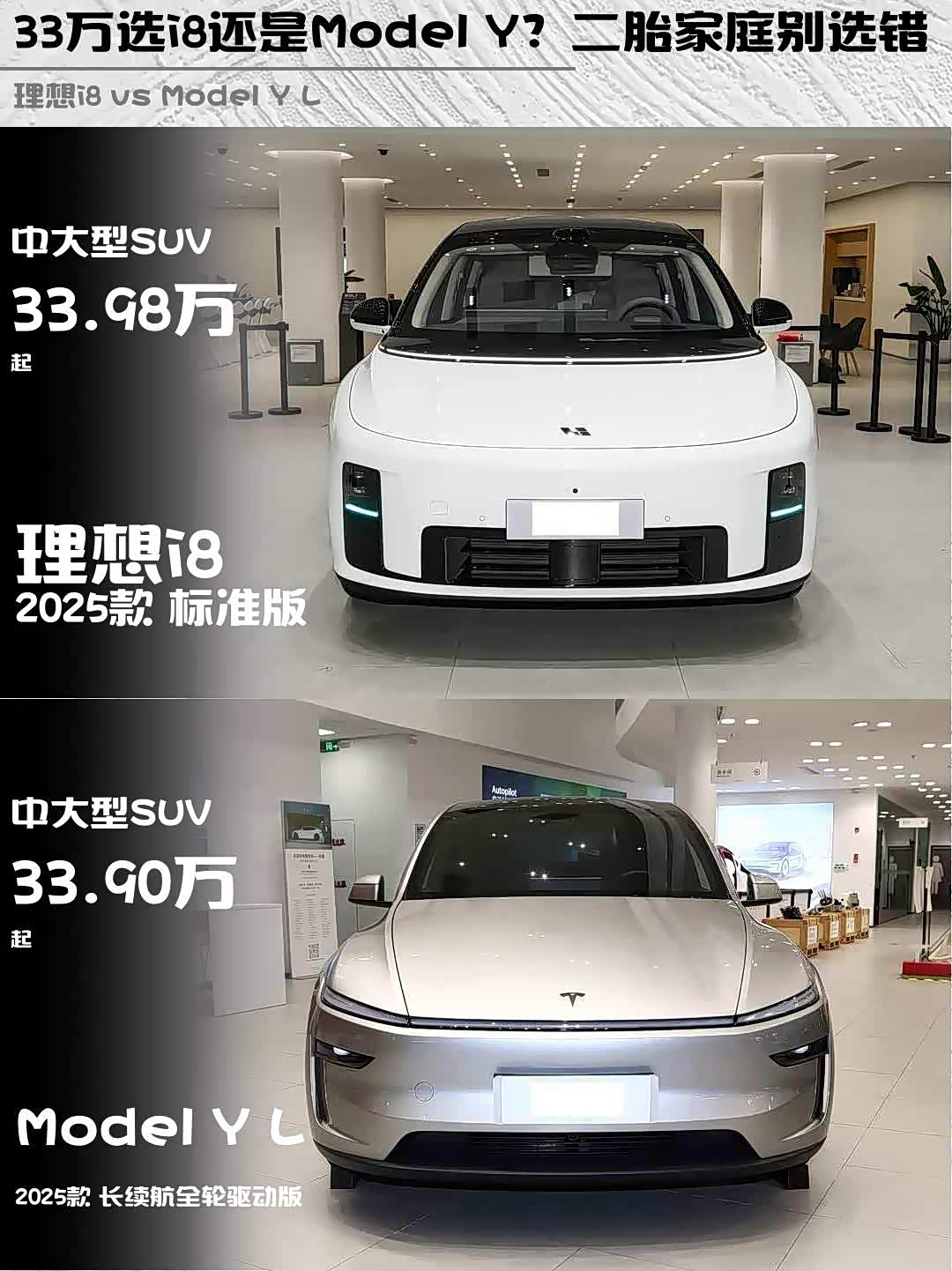 最后说价格💰 理想i8 33.98万 vs Model Y L 33.90万几乎持平,但i8多了五年质保(Model Y L是四年)。如果是二胎家庭强烈推荐i8,小夫妻偶尔自驾游Model Y L更带感~