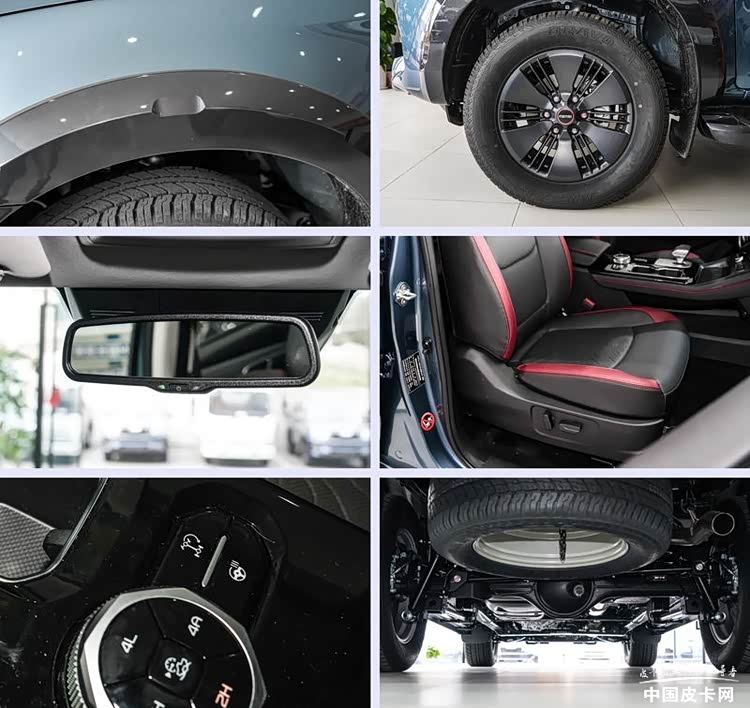 底盘部分,性能版配备了后桥差速锁、4A+MLOCK四驱、255/65 R17轮胎、钢板弹簧后悬架,性能已经非常强悍。如果车友后期想自己改装或者重载穿越,这个版本就很合适。