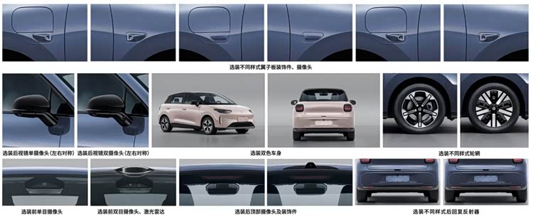 车身线条流畅舒展,采用五门五座布局,车身比例协调,兼顾城市通勤的灵活性与车内空间的实用性。细节设计上,新车提供丰富的选装配置,其中可选装双色车身是一大亮点,通过车身与车顶的撞色搭配,进一步凸显年轻化气质,满足不同消费者的个性化审美需求。车尾采用笑脸造型的尾灯,搭配大尺寸后尾门,方便取放大件物品,兼顾设计感与实用性。车身尺寸方面,结合申报信息,新车长宽高分别为4200/1800/1560mm,轴距达2605mm,定位纯电小型车,采用5座布局,依托合理的空间设计,车内前排与后排空间表现均衡,可轻松满足单身用户或三口之家的日常出行需求。