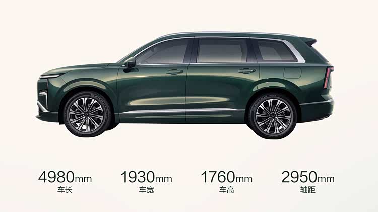 新车提供苍松绿、沁湖蓝、墨竹黑、山岩银、晨霜白五款车色。长宽高分别为4980mm×1930mm×1760mm,轴距2950mm,为2+2+2的六座布局车型。