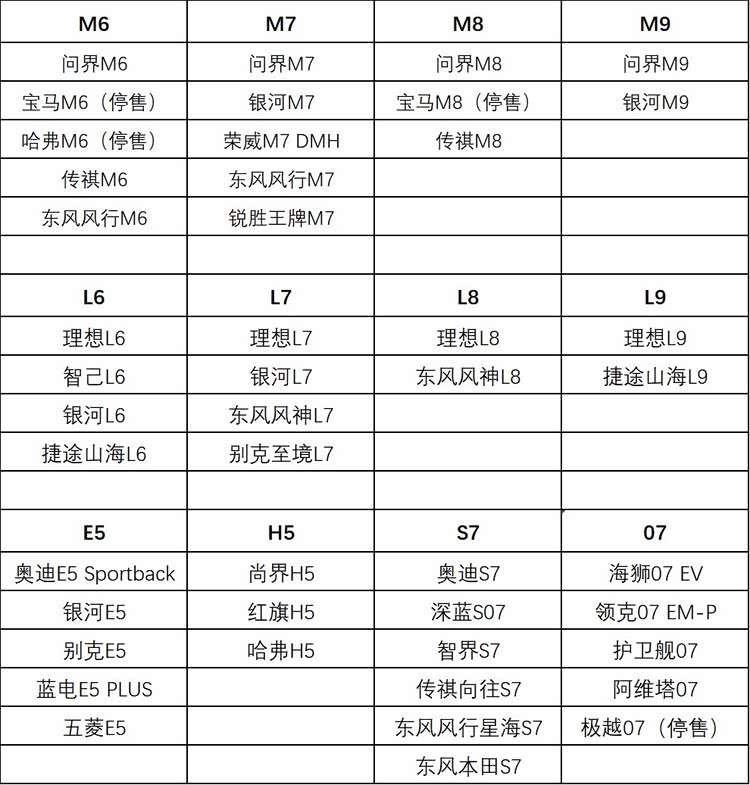 再后来的自主品牌新能源车型爆发期,蔚小理等品牌的字母+数字命名方式,更进一步加深了大家对新能源车名称的套路化印象。