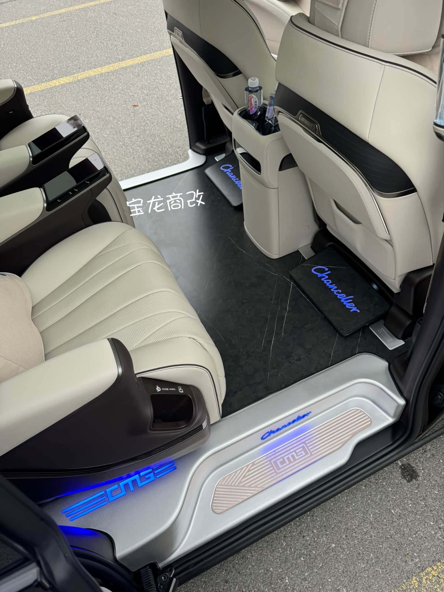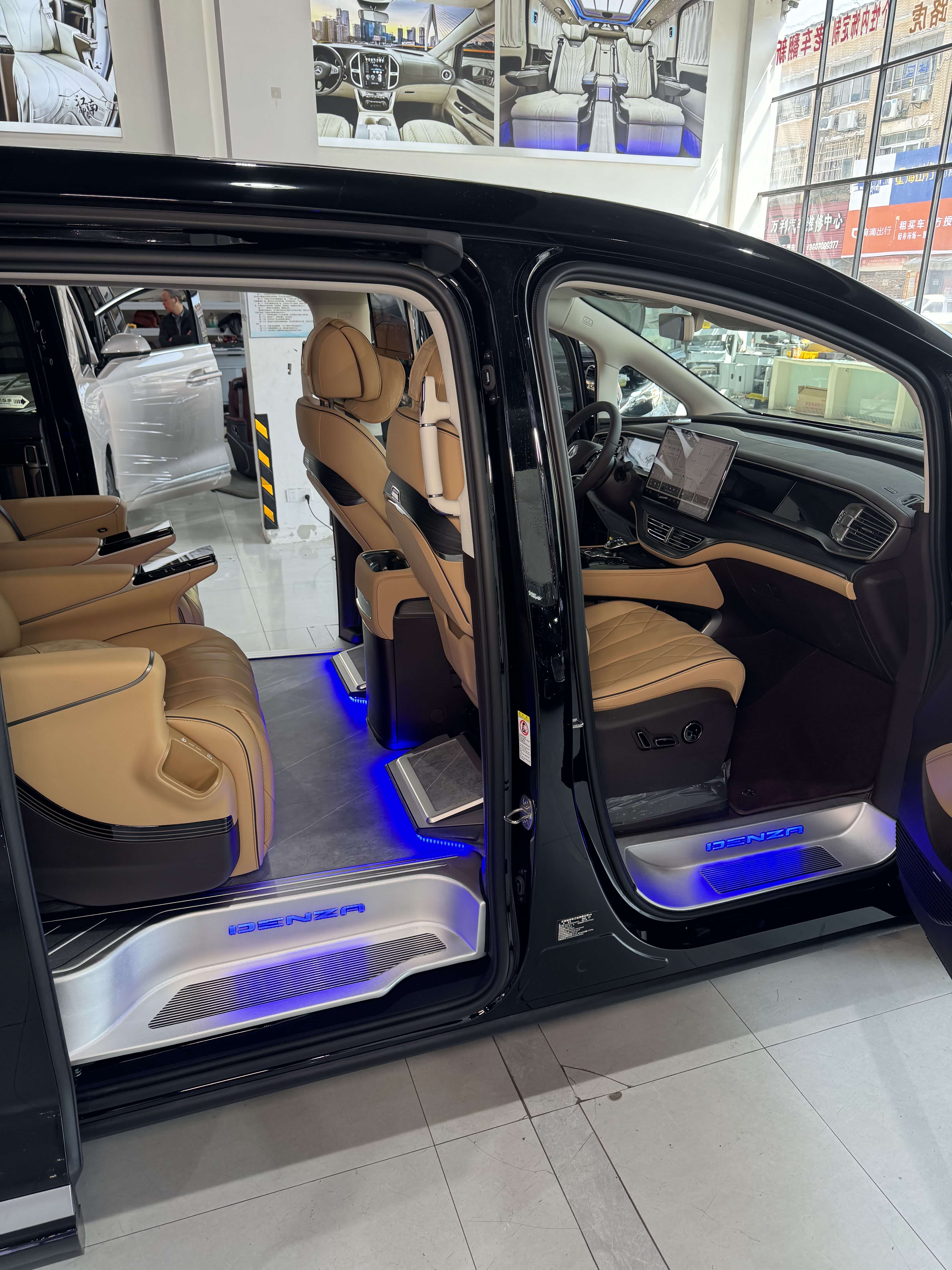 车内铺设航空铝地板,表面采用防滑耐磨工艺,光泽度饱满,不仅颜值出众,还能彻底杜绝灰尘、污渍进入原车地毯,清洁打理一步到位,对于经常接待客户的南昌车主来说,既体面又省心,这是南昌 腾势D9改装中提升内饰整洁度的标配项目。同步升级带发光 LOGO 的铝合金迎宾踏板,开门瞬间仪式感拉满,同时方便上下车,细节之处尽显豪华,是南昌 腾势D9改装中强化仪式感的细节操作。