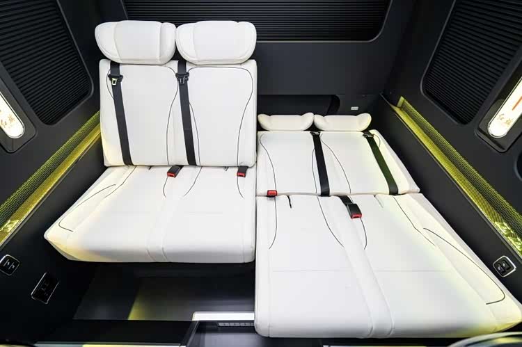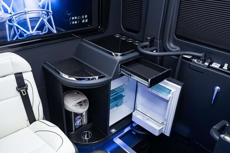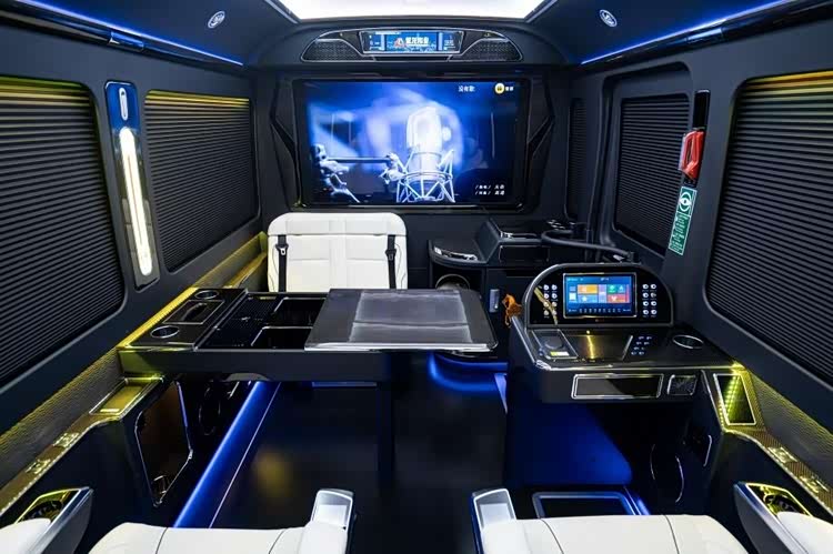 核心体验直击商务痛点:4张零重力座椅采用人体工学曲面设计,通风、按摩功能加持下,长途乘坐也能保持腰背舒展;电动升降电视全隔断实现“双舱独立控制”,商务洽谈时升屏保障私密,团队互动时降屏秒变开放空间。扇形喇叭罩传递细腻声场,长条广告屏可动态展示企业形象,从听觉到视觉构建沉浸式商务氛围。红旗国悦4S店 北京华通丰业