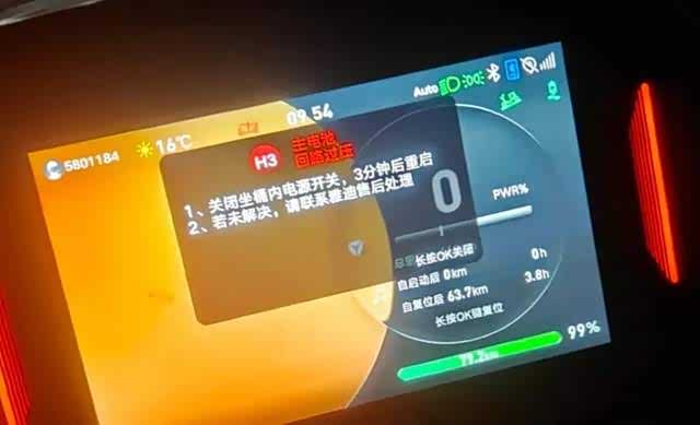 自己的电动车骑到半路,突然卡死在P档,怎么操作都没法启动。车辆仪表盘会跳出H3主电池回路过压的提示,按照提示关闭电源等待几分钟再重启,大多数情况依然没用。