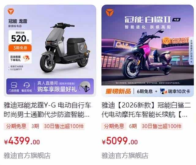 出现问题的不是小众车型,而是雅迪冠能系列里定位更高端的白鲨和龙霆。